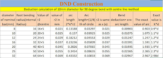 Calculation for 10mm dia,90° bend by Center line method calculation done by taking inner side bar, centre of bar and outer face of bar